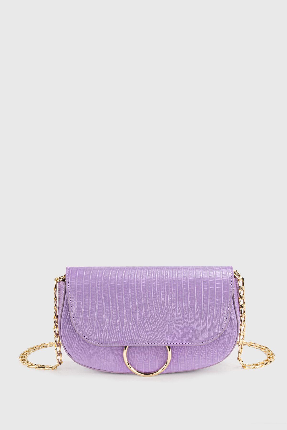 Kadın Lila Zincir Askılı Kapaklı Çanta 231