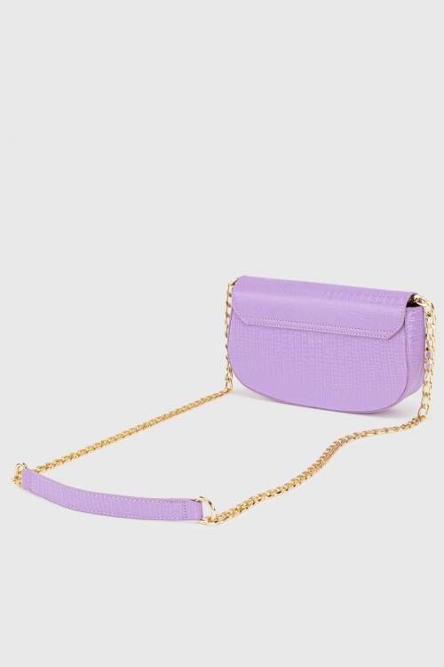 Kadın Lila Zincirli Kilitli Timsah Desenli Çapraz Askılı Çanta 224