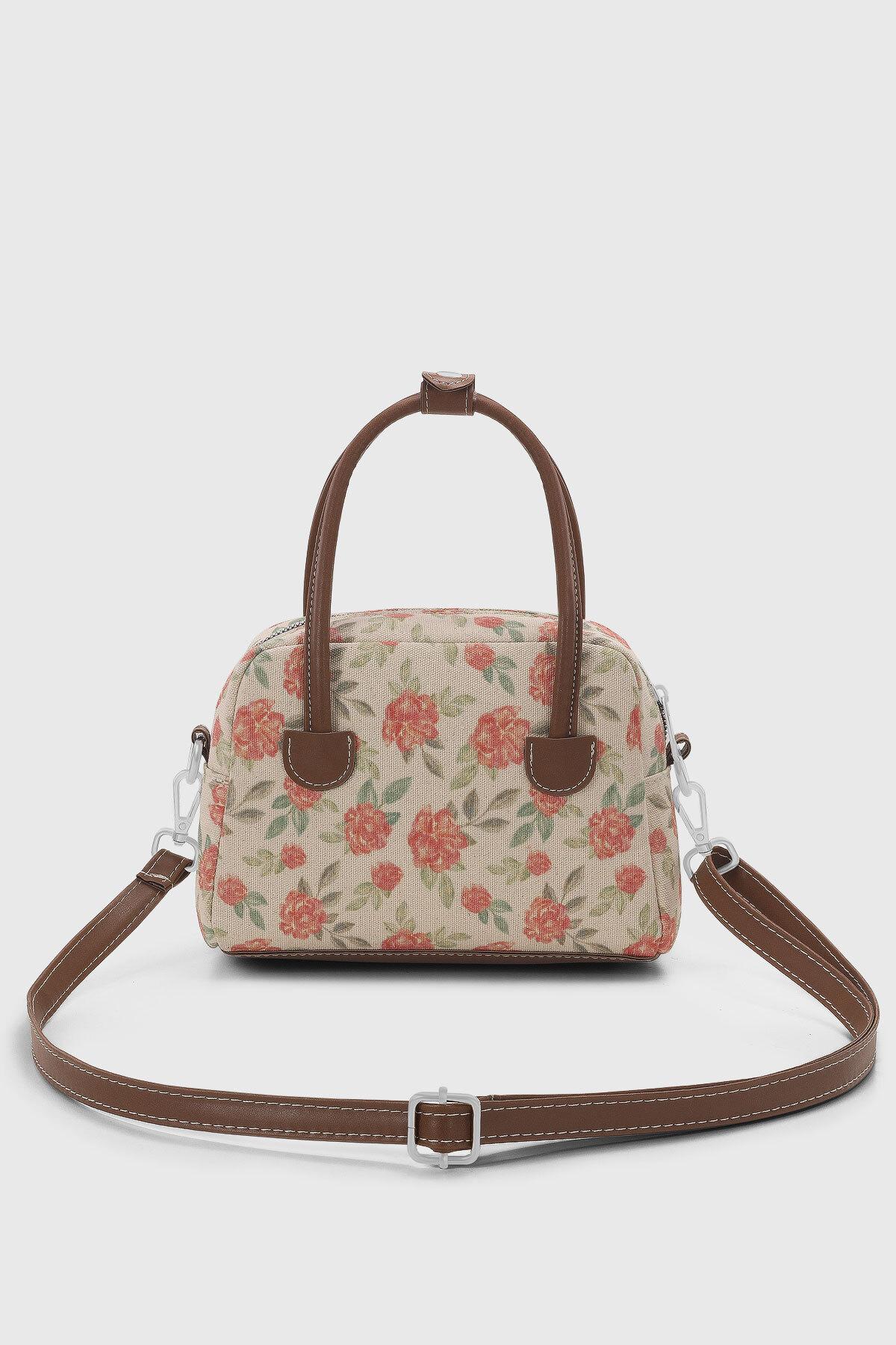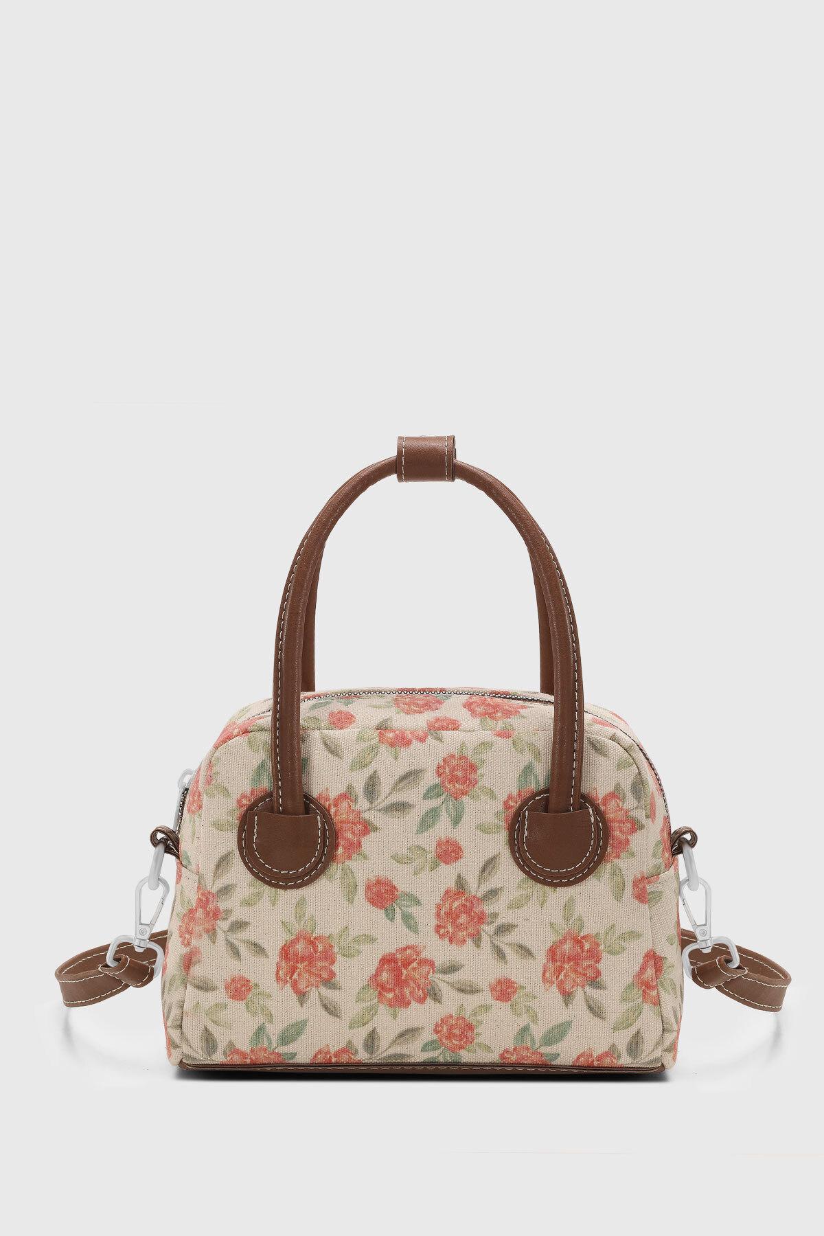 Luna Çiçek Desenli Kanvas Bucket Omuz Çantası - Ayarlanabilir Omuz Askılı, Gold Aksesuarlı