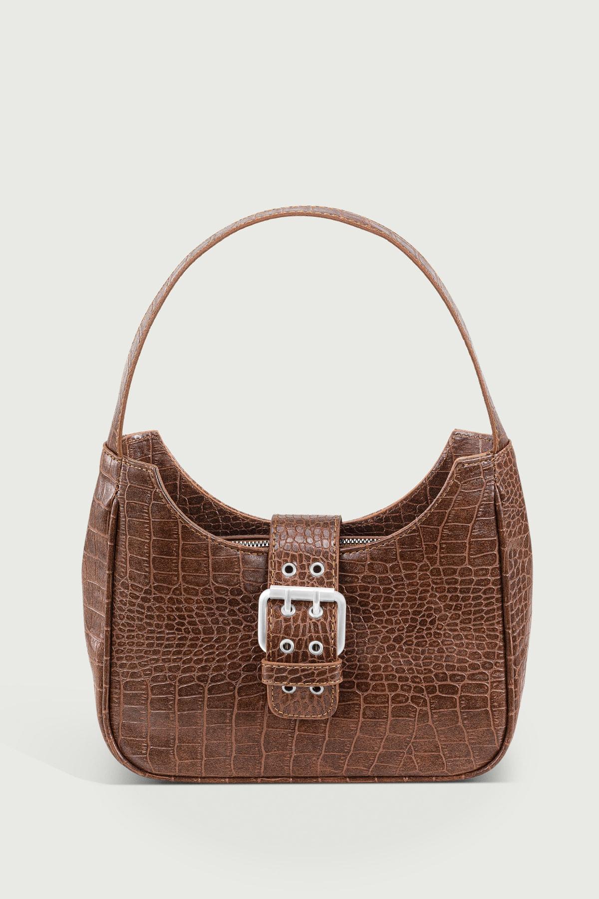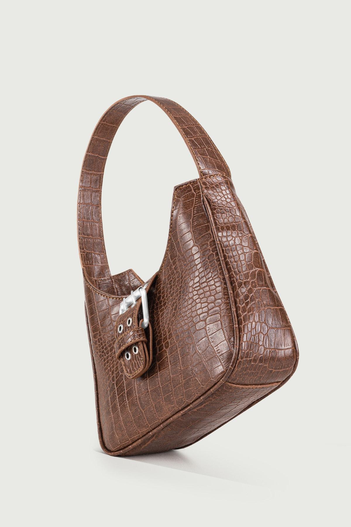Kadın Krokodil Taba Tokalı Timsah Desenli Baguette Çanta 209